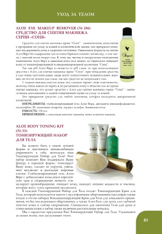 средства с Алоэ для снятия макияжа серии “Соня”, при попадании средства